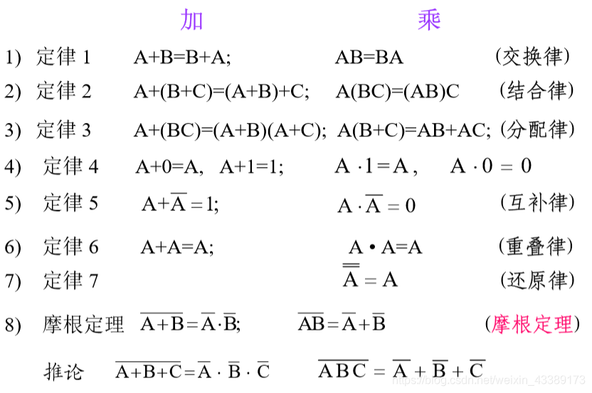 公式法是利用逻辑代数的公式和规则(定理)来对逻辑函数化简,这种方法适用于各种复杂的逻辑函数,但需要熟练地运用公式和规则(定理),且具有一定的运用技巧。
