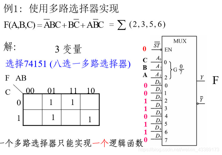 八选一多路选择器:集成芯片74151,使能端:低电平有效